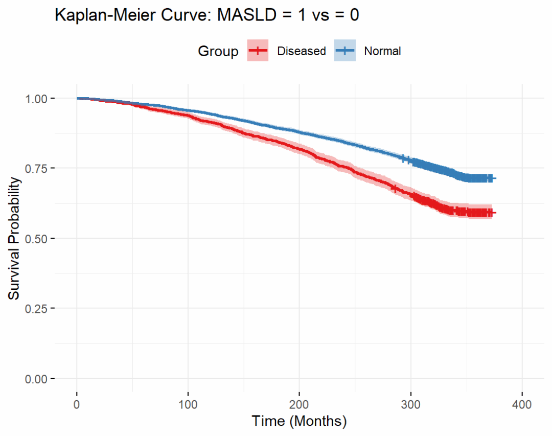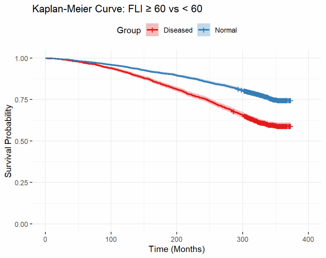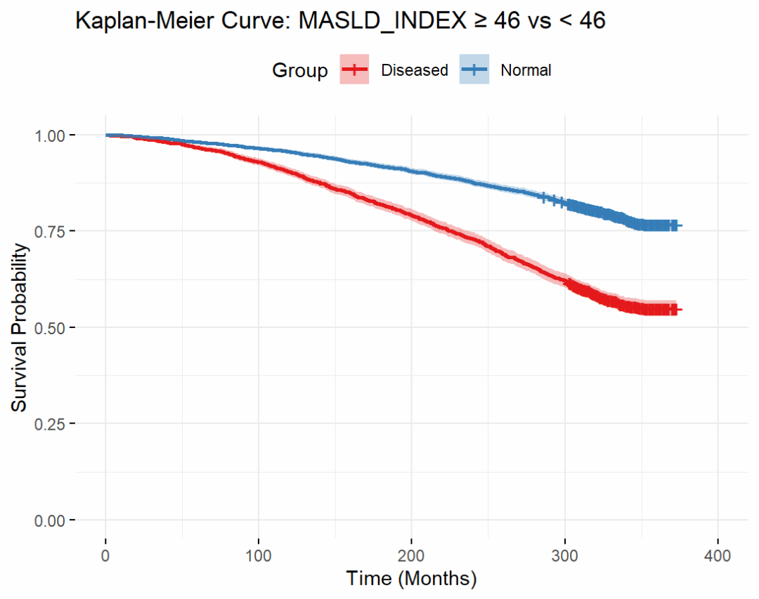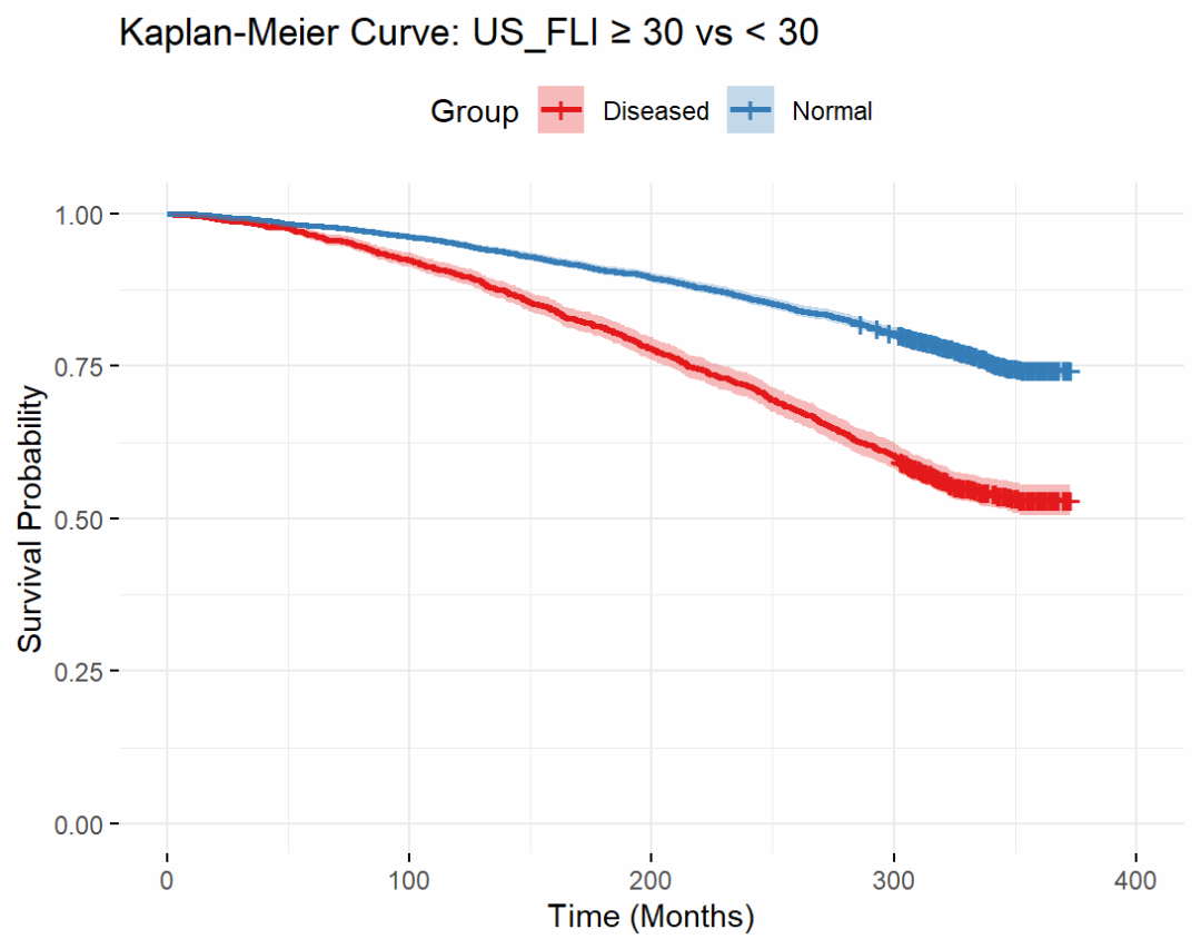 本研究基于NHANES III 1988-1994年数据,纳入20-74岁且无大量饮酒史且通过基于超声影像学筛查诊断MAFLD的患者。通过Cox比例风险模型(Cox)及Kaplan-Meier生存曲线分析比较MAFLD指数、MAF-5、US FLI、FLI和HSI在MAFLD患者预后评估中的效能。