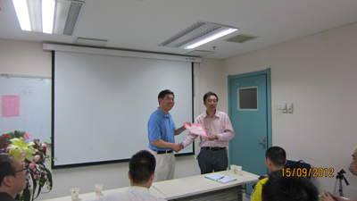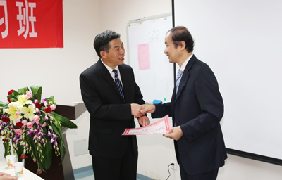 许珉教授为迟放鲁副主委颁发讲课证书