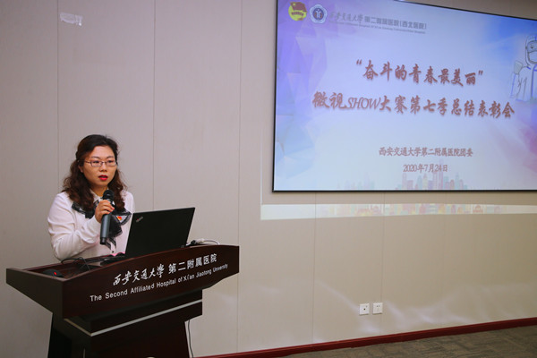 会议上,团委书记董艳向与会人员汇报了本季大赛的总体情况,本次大赛自今年4月3日启动以来,得到了全院各党支部、各科室、各部门和各团支部的大力支持和积极参与,共征集到21部视频作品。本季参赛作品表现形式更加多样,取材范围广泛,有动画、有诗朗诵、有科普小课堂、有情景再现、也有现场实录,有力地展现了二院青年人的综合素质和青春风采。6月11日,院团委组织院内外专家11人,首次面向所有参赛作品进行公开评审,并对参赛的21部视频作品逐一提出了修改意见和建议。同时,本季大赛继续采用线上投票和线下评审相结合的方式。7月1-11日,院团委联合校团委官方微信和医院官方微信,在3个微信平台联合开展网上投票,并在每期投票前增加了对应视频的抖音预告版推送,为投票预热暖场。网上投票环节,得到院内外同仁和社会各界的积极响应和踊跃投票,线上投票结束时,21部参赛作品共收到投票25118票。截止目前,各参赛视频在腾讯视频的播放次数总计达到92962次。