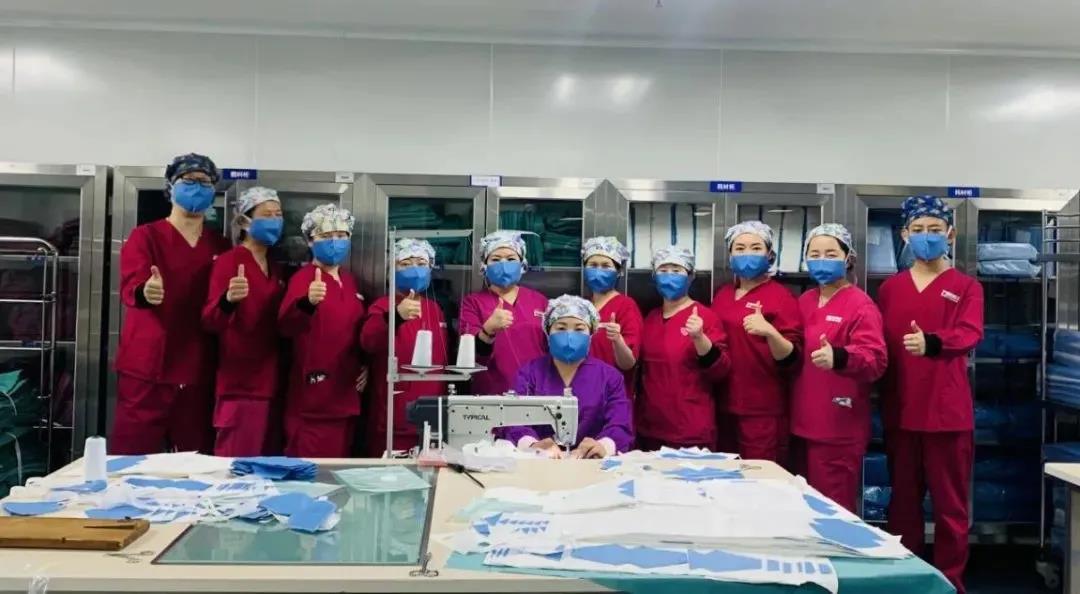 为了湖北,为了全国,为了我们交大二院负重逆行者的战士,为了交大二院发热病区的同仁,为了坚守在岗位的每一位医务工作者,在安静的交大二院,在特殊寂静的时刻,在工作间里,司主任带领消毒供应科全科人员,身着红色工作服,埋头猛踩缝纫机,坚守后方!坚守平凡!