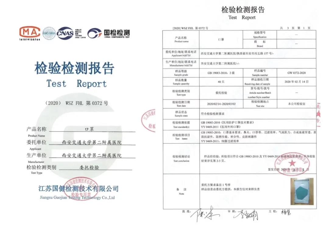 3月3日(二月初十)口罩制作一直在水深火热之中,下午传来喜报:我们翘首期盼的口罩第三方检测报告出来了,竟然通过了医用防护口罩标准GB 19083-2011和YY 0469-2011医用外科口罩标准!产品过关了,生产放心了,干劲更足了,我们继续为医院口罩应急做准备。加油!