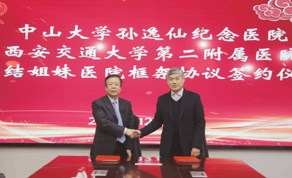 2025年12月12日下午,我院顺利举行了与中山大学孙逸仙纪念医院缔结姐妹医院框架协议签约仪式。中国科学院院士、中山大学医学部主任、孙逸仙纪念医院院长宋尔卫,西安交通大学医学部主任吕毅,西安交大二附院党委书记刘昌、院长张蓬勃等双方领导及学科骨干出席签约会,共同见证两院开启深度合作新征程。此次签约是两院基于高度契合的发展愿景与互补性资源优势,响应国家战略、践行“健康中国”理念的重要举措。会上,张蓬勃院长...