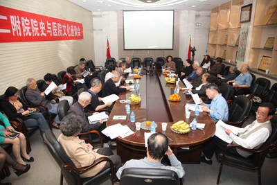 党委副书记巩守平讲解院志编撰过程 党委宣传部部长买秋霞主持会议 原党委书记急诊科老教授封英群 原副院长任根喜 原副院长心内教授叶复来 原院长普外科老教授纪宗正 传染科老教授吴修斌 传染科老教授任喜民 儿科老教授王志刚 ...