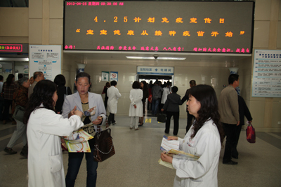 2013年4月25日是第28个全国儿童预防接种日,。上午,预防保健科在门诊楼前举办了4.25“全国儿童预防接种日”宣传活动,并在门诊大厅电子屏滚动播出了今年全国儿童预防接种日的宣传主题:“宝宝健康从接种疫苗开始”。...