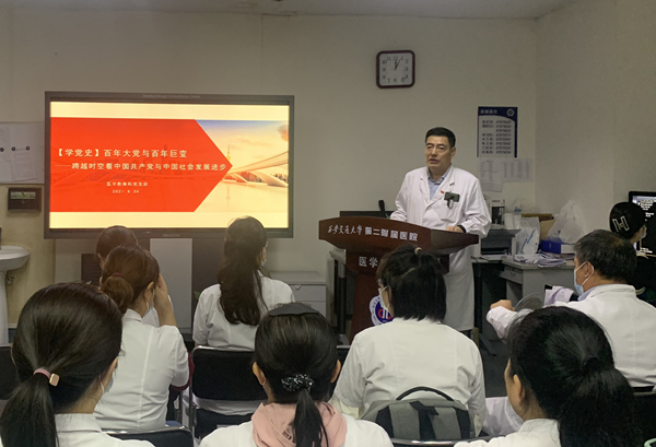 9月30日中午,医学影像科党支部利用工作间隙召开以“学党史、感党恩、迎国庆”为主题的党史专题组织生活会。除全体党员及预备党员外,支部还专门邀请发展对象和入党积极分子参加了本次党史学习教育,会议由宣传委员孙泓泓同志主持。
