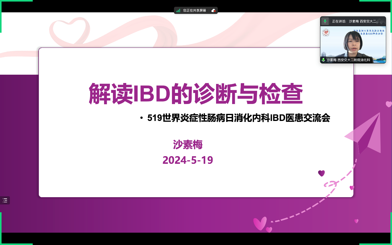 为了更好的促进患者与家属对IBD的认识与关注,改善IBD患者的疗效和预后并提升IBD患者的生活质量,消化内科“爱之园”团队于5.19世界炎症性肠病日当天为患者举办了内容丰富的线上患教会。会议由刘欣主任医师担任主席,李嫱护师主持,并由团队多名医生护士组织参加。会议当天,大家纷纷上线,为患者答疑解惑。