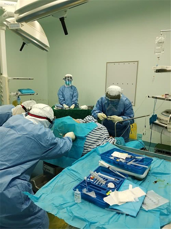 2月10日,淡某某发觉胎动频繁,偶有宫缩,胎心率波动幅度大。多学科会诊后,参加会诊的医师决定在促进胎肺成熟后实施剖宫产终止妊娠,以保证母婴安全。16时许,妇产科团队在严密防护下为该孕妇实施了剖宫产手术,手术过程顺利。产妇及新生儿娩出后,分别转入发热病房和新生儿隔离病区进行后续护理和诊治。