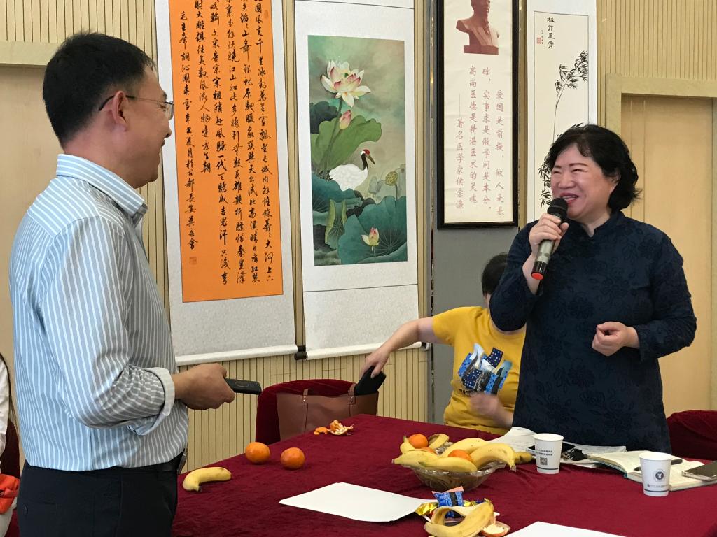 王永军老师通过道德经中的部分章节和语句,结合医务工作者工作和当下学生思想特点,进行了阐释和分享。在如何与人相处中,用“天下之至柔,驰骋天下之志坚”、“人之生也柔弱,其死也坚强”来讲格局;用“多言数穷,不如守中”来讲耐心;用“合抱之木,生于毫末;九层之台,起于累土。”来讲持之以恒;用“图难于其易,夫轻诺必寡信”来讲沉稳专注;用“曲则全,枉则直,洼则盈,敝则新”来讲能屈能伸等。大家在工作和生活中遇到难事应该以什么样的心境来对待,遇到家庭矛盾和孩子教育应该用哪些技巧来处理等等,王老师的讲述声情并茂,贴近现实,在座人员听得津津有味。