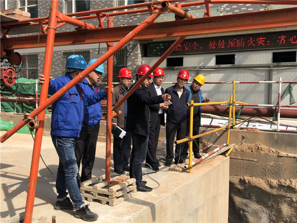 院领导协同专家及相关科室负责人、施工监理单位相关人员首先前往施工现场,查勘施工条件、了解现场情况。随后针对现场勘察情况,结合与会各方对该工程现状汇报及描述,同时针对存在的施工难度大、工序复杂、防水处理及成本造价等相关问题进行了讨论。党处长对现场施工环境及项目自身特殊性等问题给与了客观评价和全面分析,并给出了可行性参考建议。