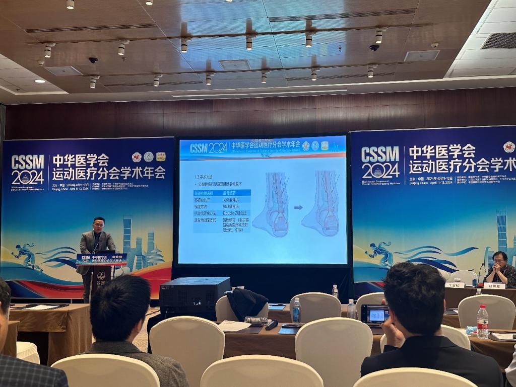本次大会中,关节与足踝病区团队秉持着加强业内沟通、拓宽专业视野、促进学科发展的态度积极参会学习,其中大会发言2人,壁报交流8篇。张晨副主任医师研究团队在本次大会的足踝分会场以《经跟骨横行隧道联合自体肌腱移植在急性闭合性跟腱断裂修复治疗中的应用研究》为主题的进行发言,与业内同仁分享了团队在跟腱断裂修补及重建领域的研究心得。马瑞副研究员在膝关节分会场发表了以《Double posteromedial portals vs. single posteromedial portal for arthroscopic management of popliteal cysts》为主题的演讲,着重分享应用关节镜下4字位双后内侧入路治疗腘窝囊肿的优势。本次大会系关节与足踝病区成立后研究团队首次参加国内运动医学尤其是足踝领域高水平研讨会。