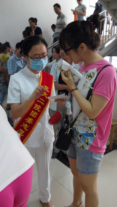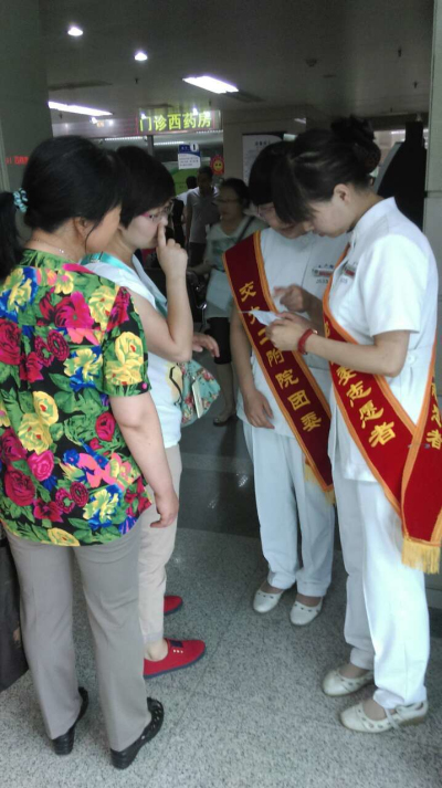 在本次志愿服务活动中,我院团干部纷纷踊跃带头报名,很多临床一线的团员青年更是刚下了夜班就立即投入志愿服务中,用自己的实际行动有力地诠释了爱院敬业、无私奉献的内涵。特别是肿瘤病院团支部书记陈静,作为准妈妈不仅在征集志愿者的通知刚刚发出后就积极响应并号召本支部的青年人大力参加,更是自己带头坚持完成了一次志愿服务。