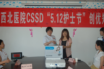 为积极响应“创百优医院”号召,迎接5月12国际护士节的到来,消毒供应科于5月11下午在科室举办了一场别出心裁的“创优知识竞赛”,护理部杨惠云主任和感染办李金娜主任参加了本次竞赛。