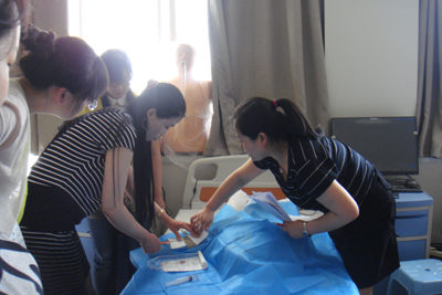 此次培训班邀请到北京以及我省在PICC具有较强的专业理论知识、具备丰富的临床经验的老师担任授课任务,包括唐都医院血液科的何华,北京的惠东红护理专员,交大二附院血管外科的戴社教、张瑞丽副主任护师、宋亚华主管护师、李小宁主管护师等老师,分别就国内外静脉输液新进展、PICC综述基础知识、PICC化疗药物方案及穿刺部位评估、操作标准及维护流程、常见并发症及处理等进行了理论授课。理论课程结束后,我院张瑞丽、宋亚华、李小宁三位护士长在操作教室现场演示了超声引导下赛丁格技术置入PICC导管技术,并对操作中的关键环节进行重点讲解,对学员提出的问题进行详细答疑。我们对参加此次培训的46学员进行了严格的理论及操作考核,经过严格考核,共有41名学员获得资质认证证书。