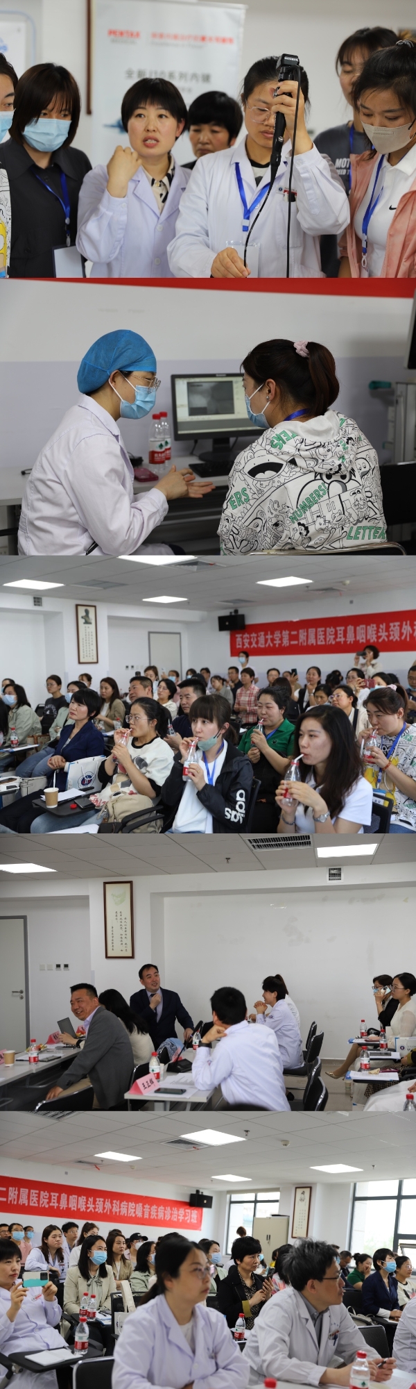 5月11-12日,由我院主办的陕西省医学继续教育项目学习班暨嗓音疾病诊治学习班于开班。经过过去八届线下线上学习班的经验积累及学习反响,本次学习班延续“手把手”矫治工作坊及专家授课两种学习模式相结合,并新增了嗓音评估及频闪喉镜检查、电子喉镜检查及早癌筛查工作坊,目的为学员们提供实用、高效的实战性培训,学习班吸引了包括青海、甘肃、河北等外省及省内100余名学员参加。
