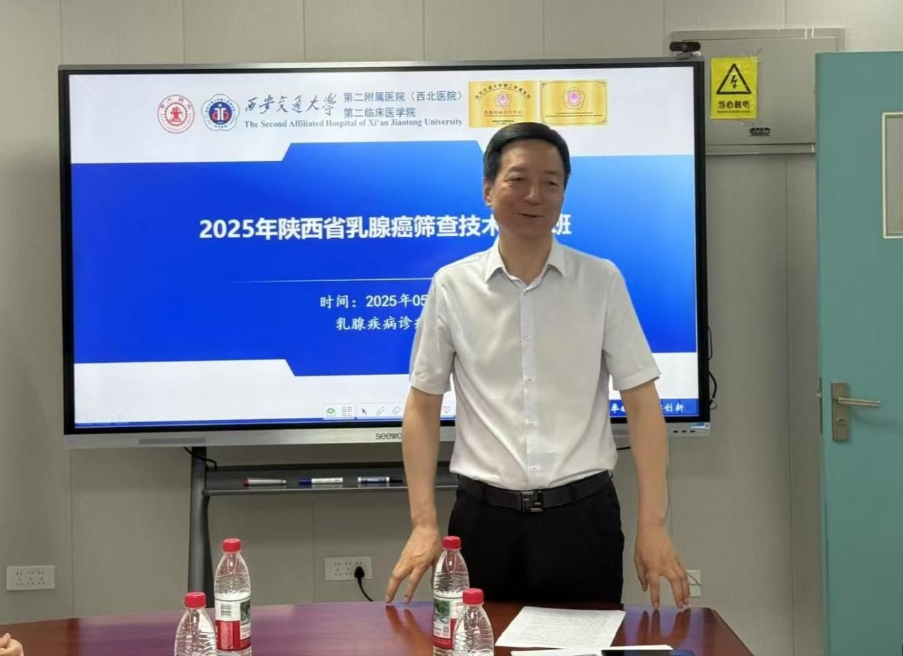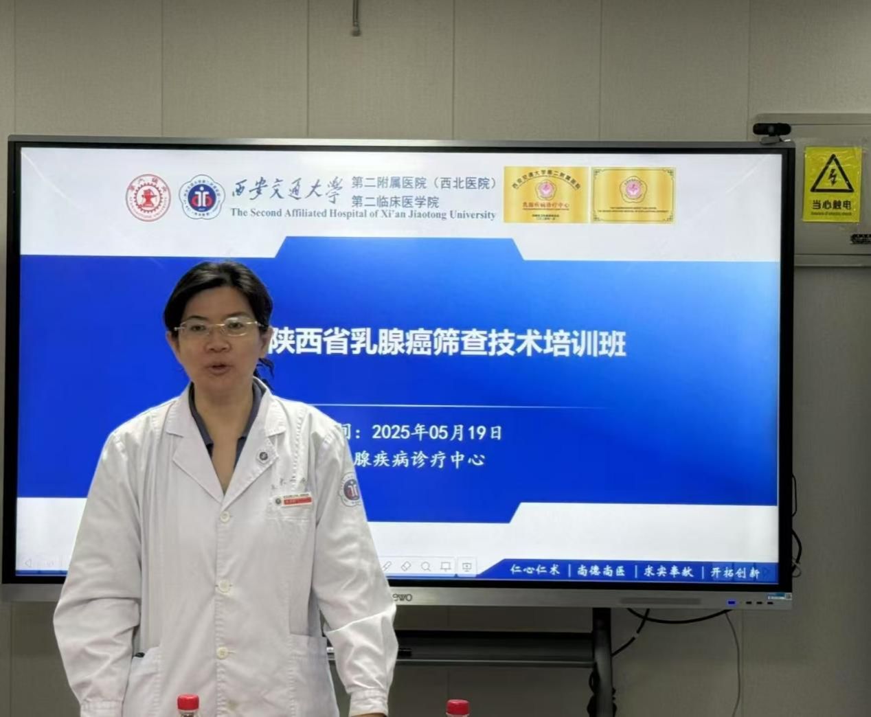 为进一步提升陕西省乳腺癌筛查技术水平,促进区域内乳腺癌筛查技术骨干人员能力提升、让患者在省内不同的地区都能得到同质化的诊断和治疗。2025年5月19日至22日,我院乳腺疾病诊疗中心举办“陕西省2025年乳腺癌筛查培训班”,为期四天的培训班吸引了来自延安、宝鸡、渭南等市县多个医疗单位的学员参加学习。我院副院长种铁,医务部副主任王虎清,教务部副主任周戬平,超声科副主任姜珏及乳腺疾病诊疗中心主任张淑群、康华峰、刘棣、杜冲及中心医务工作者共同参加开幕式。会议由乳腺疾病诊疗中心副主任刘棣主持。