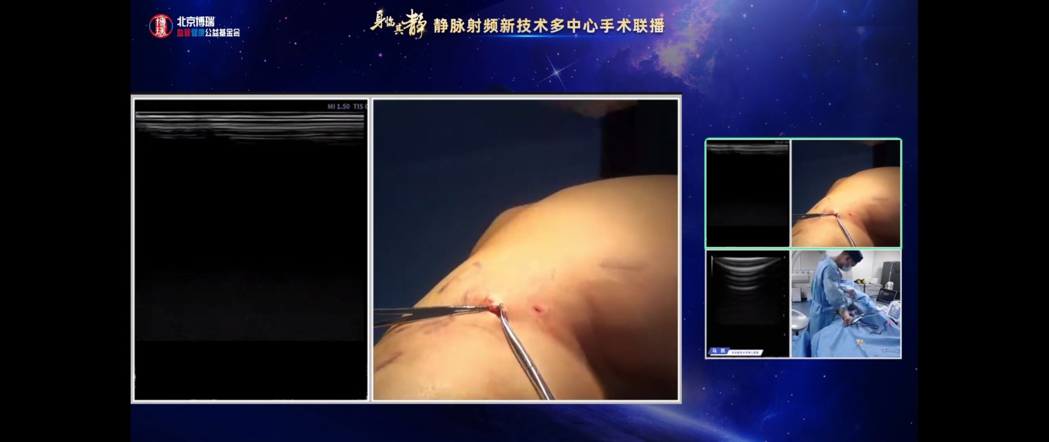 在全国手术直播中,马建仓主任团队李宗禹、关昊、付航宇分别进行了2台手术的演示,手术团队首先对患者实施高位结扎以阻断曲张静脉主干,继而运用射频腔内闭合技术实现血管精准消融,最终通过点剥技术处理细小分支血管,两台手术分别全程耗时约20-30分钟。从术前的评估到手术过程以及术后的恢复,每一步都展示了新术式的精细与高效,显著缩短了患者恢复时间,提升了术后生活质量,患者术后最快6个小时可下床活动,术后第一天即可出院,并且微创的治疗方案兼顾了腿部的美观,获得非常满意的治疗效果。此次联播不仅展示了新技术的优势,全程通过直播平台向全国专家实时展示,操作流程规范流畅。术后,与会专家一致认可该团队技术精湛,认为其创新实践推动了微创静脉曲张治疗领域的标准化进程,更促进了全国血管外科领域的交流与合作,为推动下肢静脉曲张治疗技术的进步奠定了坚实基础。