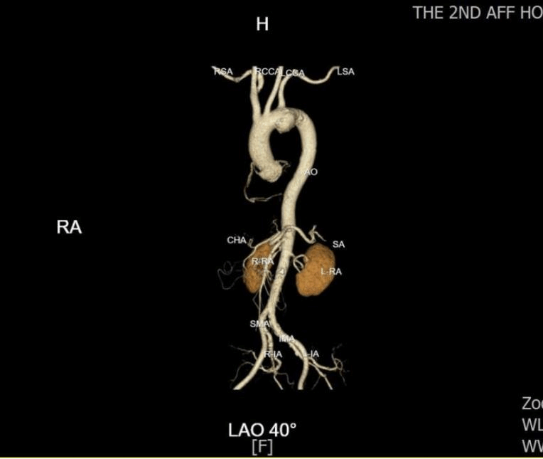 “左腿左手突然使不上劲,以为是老毛病,没想到查出个‘定时炸弹”。9 月下旬,63 岁的吴大叔在西安交大二附院神经内科就诊时,胸部 CT 意外发现主动脉弓部瘤样凸起,进一步检查确诊为主动脉弓动脉瘤合并附壁血栓—这一病变位于左颈总动脉与左锁骨下动脉之间,恰是人体血管 “交通枢纽”,一旦破裂或血栓脱落,可能引发大出血、脑卒中,死亡率极高。“传统开胸手术创伤大,老人身体扛不住;常规腔内手术又会堵死分支血管,两难。”神经内科主治医师胡春婷第一时间转诊至心内科邓捷主任团队,一场针对复杂血管病变的 “精准攻坚战” 就此展开。