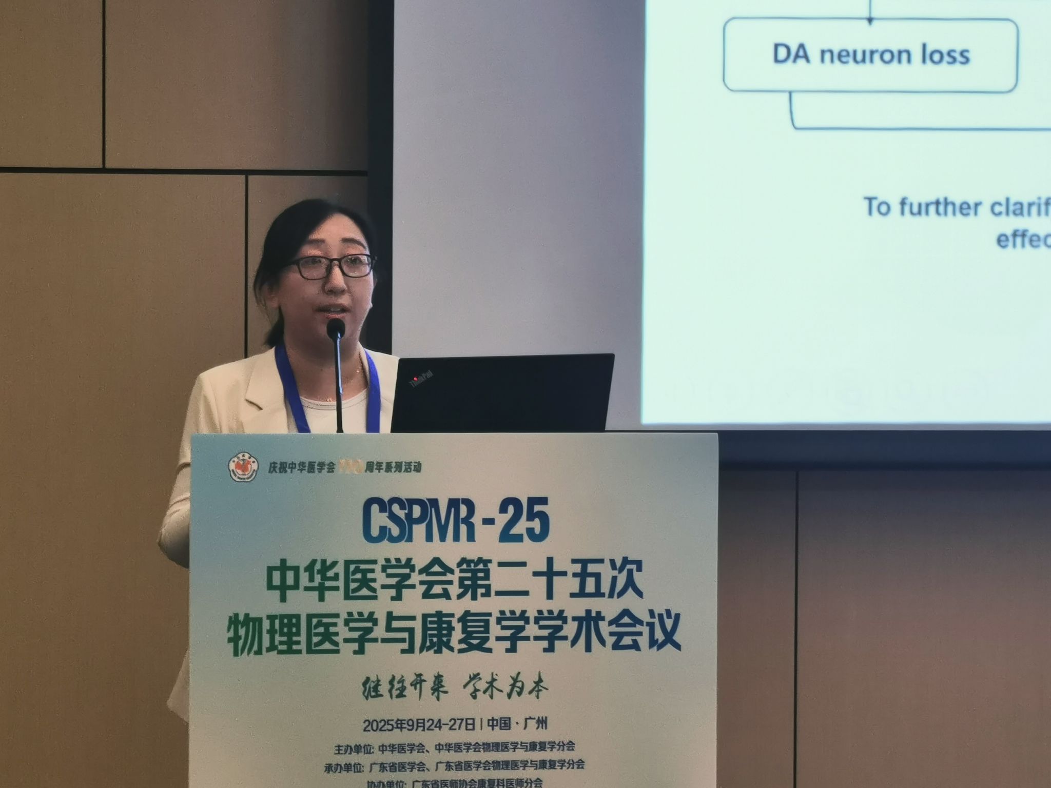 李立博博士在青年英文演讲比赛中汇报了题为《Accelerated iTBS Ameliorates Cognitive Impairment in Parkinson's Disease via Septo-Hippocampal Pathway》的研究,揭示了经颅磁刺激改善帕金森病认知障碍的潜在神经通路,体现了康复医学科在帕金森病研究方面较高的专业水平,并获得大赛第三名的佳绩。