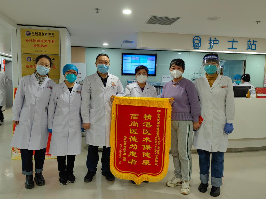 2023年1月17日,西安交通大学第二附属医院康复医学科张巧俊团队收到了一面即将康复出院的一对高龄新冠夫妻的感谢锦旗。