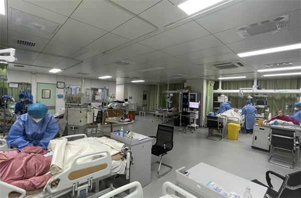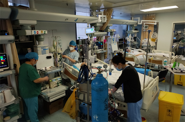 “千磨万击还坚劲,任尔东西南北风”。12月7日疫情防控措施优化后,西安随之迎来第一波疫情高峰,面对新冠重症患者不断增多的严峻形势,院领导指示:扩容ICU,全力收治新冠重症患者。我院重症医学科临危受命,正副主任、护士长统筹谋划,全科医护人员积极响应,火力全开,短短几天时间重症医学科在原有的二个病区的基础上再增加一个,专门收治新冠重症患者,床位从二十五张扩容到四十二张。重症病人的救治需要大量有经验的医护人力投入,然而,此时正值西安新冠感染的高峰期,重症医学科原有医护人员感染人数也在与日俱增,最高峰时达到80%。面对床位增加和人员减少的双重困境,我们可爱可敬的医生护士们纷纷请缨提前返岗,带着尚未痊愈的病体投入战斗。院领导、人力资源部、医务部、护理部给与了我们大力的支持,各科室的兄弟姐妹们纷纷赶来支援,极大地缓减了人力短缺的状况。国装部、后勤保障部提供了有力的仪器、物资支持,保障了各项工作的顺利开展。