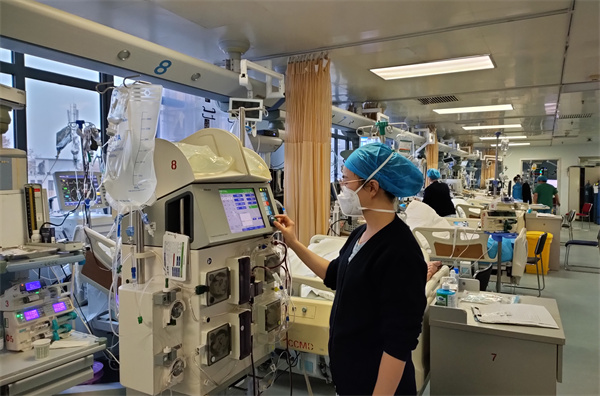 截至大年初四,重症医学科的床位仍处于满负荷,所有的医护、支援人员都坚守在自己的工作岗位上。2台ECMO在持续运转,12台有创呼吸机需要根据患者情况不断调整,8台无创及高流量呼吸机需做好温湿化,血滤机、注射泵、监护仪的报警声滴滴作响,面对如此艰巨任务,容不得他们丝毫马虎,全神贯注监护患者生命体征,一丝不苟操作仪器设备,精益求精做好院感防控。