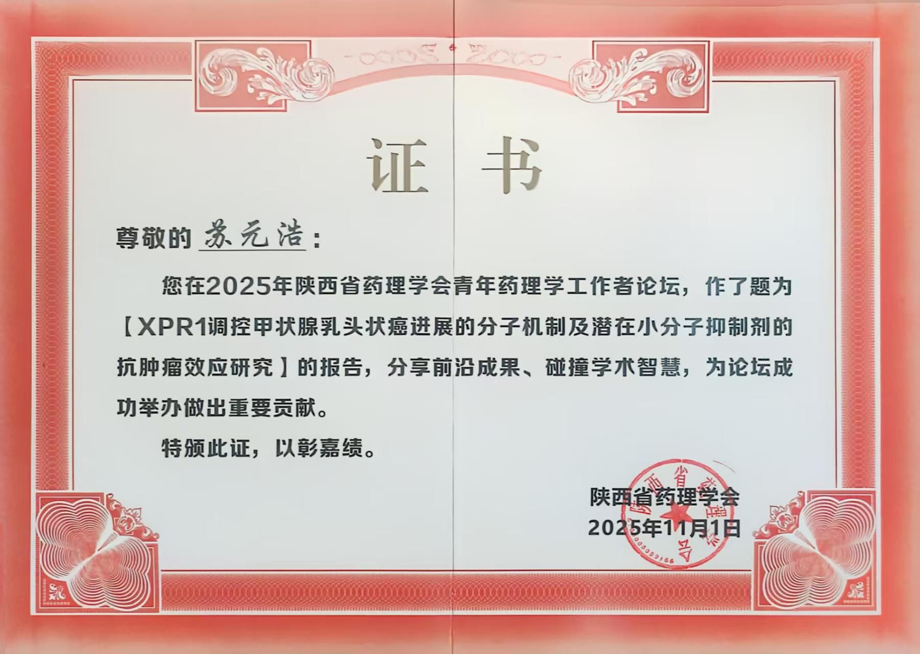 2025年11月1日,陕西省药理学会学术年会暨青年药理学工作者论坛在西安召开。在科室主任王志东主任的积极推动下我院老年普通外科踊跃投稿,科室熊永强医生、苏元浩博士生受邀在青年论坛进行报告,两位的研究工作同时得到陕西省药理学会老年病药物专业委员会姬媛媛主任委员的悉心指导。二人分别围绕抗甲状腺肿瘤药物干预机制与中药复方肝损伤调控领域做相关专题报告,展现了科室对临床与基础科研的深耕细作,以及对中西医结合诊疗模式的高度重视与积极探索。