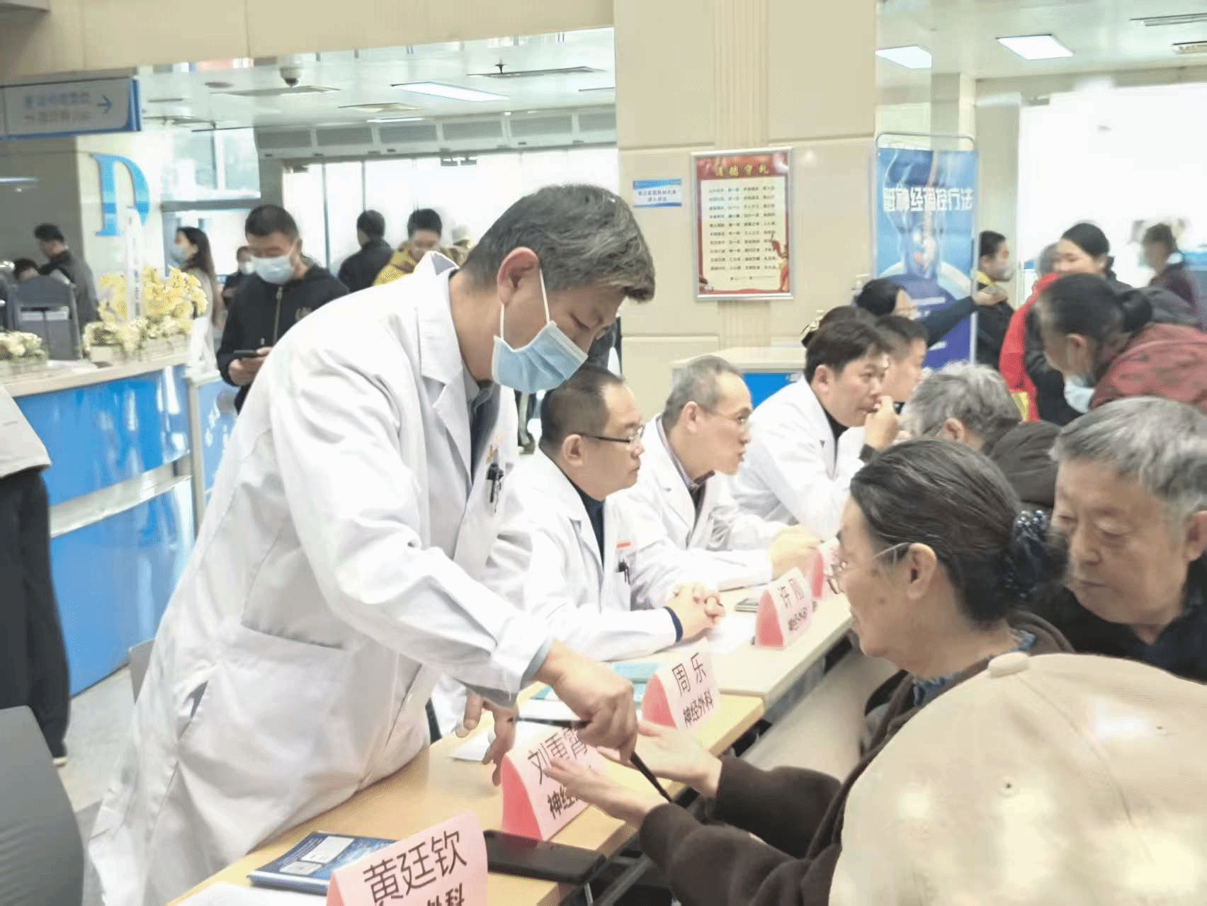 活动现场气氛热烈,义诊台前早早便聚集了前来咨询的市民。参与本次义诊的专家阵容强大,由神经外科刘重霄主任医师、周乐主任医师、许刚副主任医师、黄廷钦主治医师,以及泌尿外科张鹏主任医师,薛玉泉副主任医生,李钊伦主任医师,曹金龙住院医生,压疮伤口造口专科小组的王金娟、陈娟两位副护士长共同组织的专家团队,以高度的热情和专业的素养投入到义诊服务中,他们与科室的医护人员,压疮伤口造口专科护理小组的护理骨干们并肩协作,充分发挥了多学科联合诊疗(MDT)的优势。