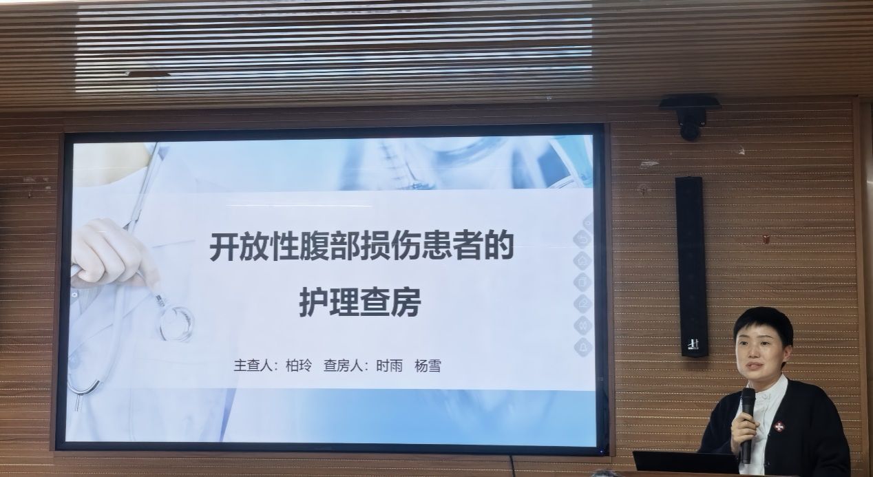 活动在上半场迎来了由急诊科团队精心准备的“开放性腹部损伤”护理查房。查房伊始,急诊科杨雪老师以扎实的理论基础,系统梳理了腹部损伤的解剖生理、损伤机制、临床表现与鉴别要点,为后续的护理实践构建了清晰的理论框架,体现了“知其然,更知其所以然”的严谨学风。
