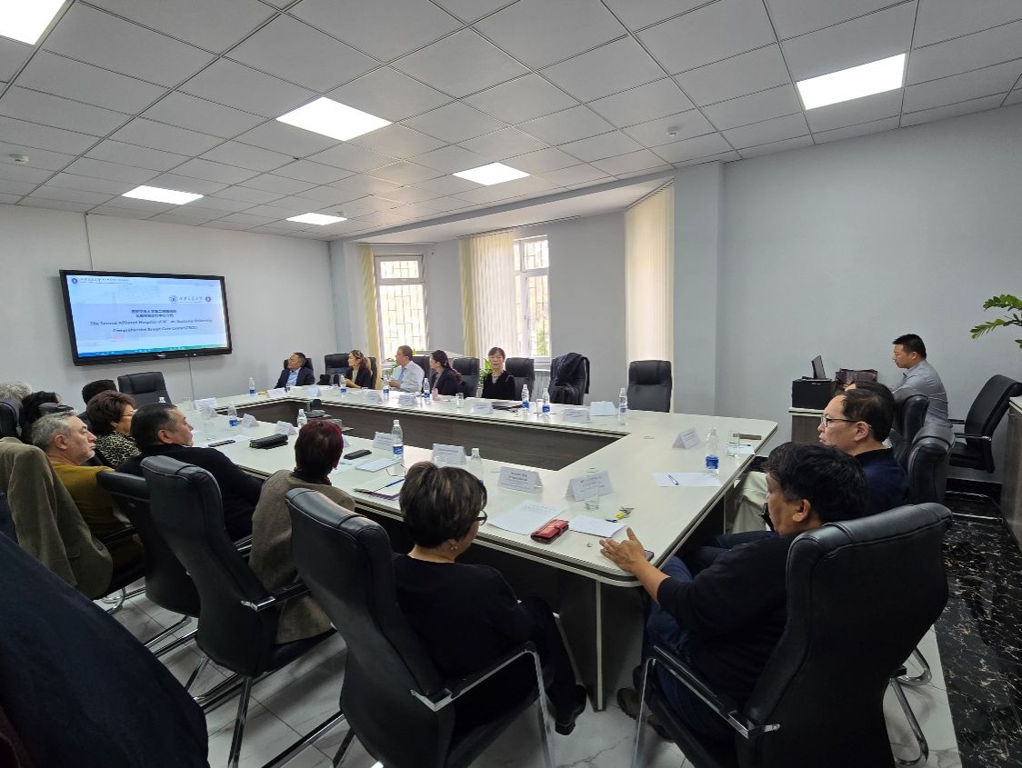 在吉尔吉斯斯坦国际大学医学院举行的专题座谈会上,吉方对代表团的到访表示热烈欢迎,双方开展了富有成效的对接交流。出席会议的吉方代表包括:理事会主席、国际医学院院长、吉尔吉斯斯坦国家科学院院士阿瑟尔别克·艾达拉利耶夫教授,教学与行政事务副院长阿丽娜·穆萨克兹教授,国际事务副院长马克萨特别克·阿纳尔巴耶夫教授,科研事务副院长埃尔米拉·阿克玛托娃教授,教务长古丽米拉·阿西莫娃教授,以及附属楚河州立医院副院长阿尔滕别克·埃斯特别索夫教授等。