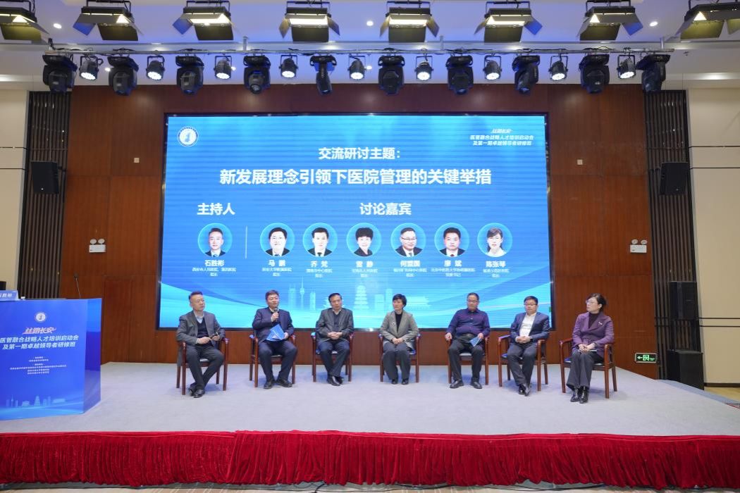 专题讨论环节以“新发展理念引领下医院管理的关键举措”为主题,由石胜彬院长主持,延安大学附属医院院长马鹏、渭南市中心医院院长乔梵、宝鸡市人民医院院长雷静、北京中医药大学孙思邈医院党委书记廖斌、铜川矿务局中心医院院长何盟国、杨凌示范区医院院长陈张琴六位医院管理者,围绕学科生态协同、数字化治理、人才价值评估等议题展开深度交流,共商医院管理转型升级的实现路径。