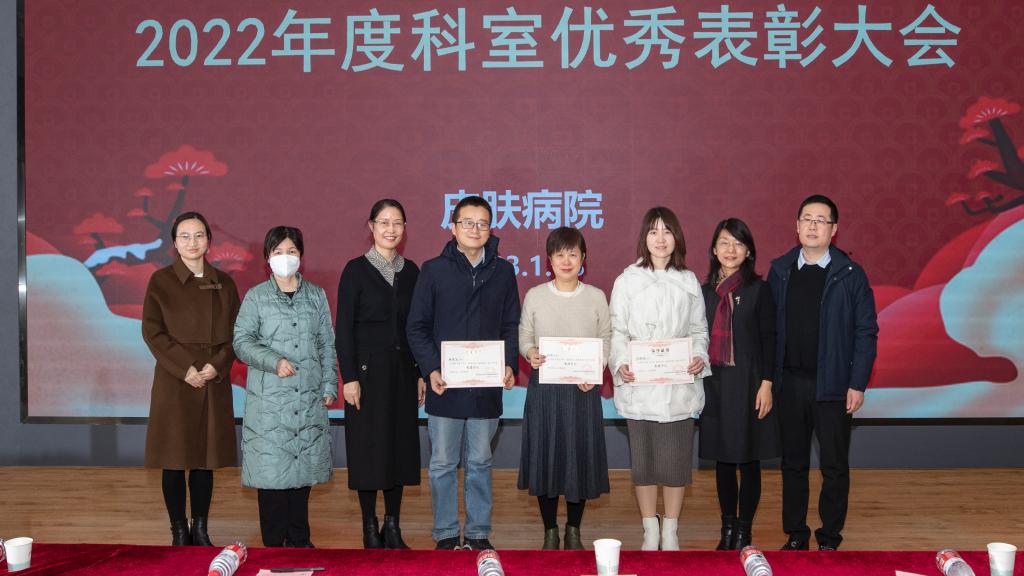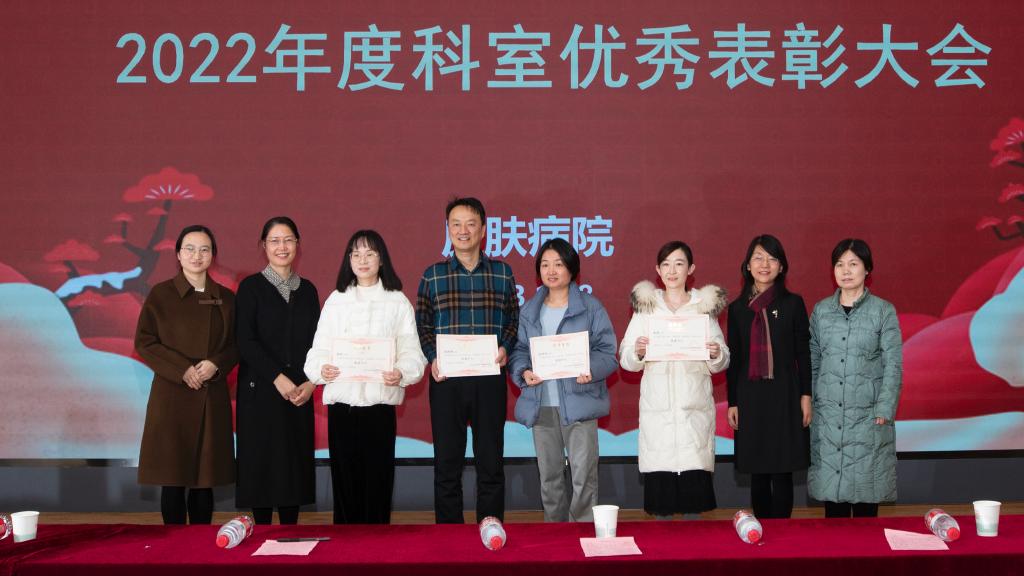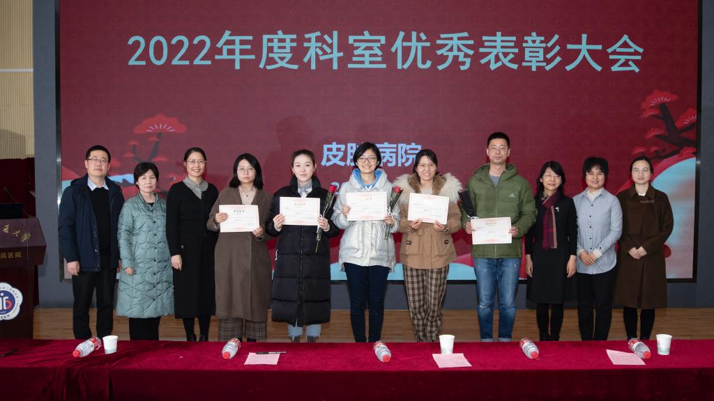 之后,由曾维惠主任主持、宣布2022年度科室先进个人及先进团队,集体合唱歌曲“我和我的皮科”,整个过程气氛热烈、鼓舞人心。