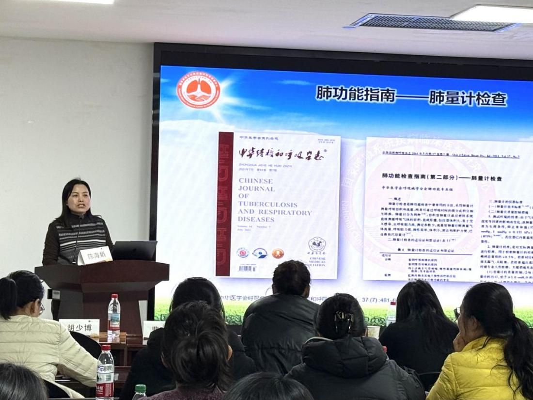 随后,由来自西交大二附院的陈海娟老师以《肺通气功能检查的方法与质量控制》为题进行授课,陈老师从肺功能检测的基本方法讲起,承接杨拴盈教授讲课内容,对于各项指标的实际意义进行解读。同时,她详细列举了肺功能检测结果质控要求,并逐一进行解读,配合相关例证,详解质控要求。