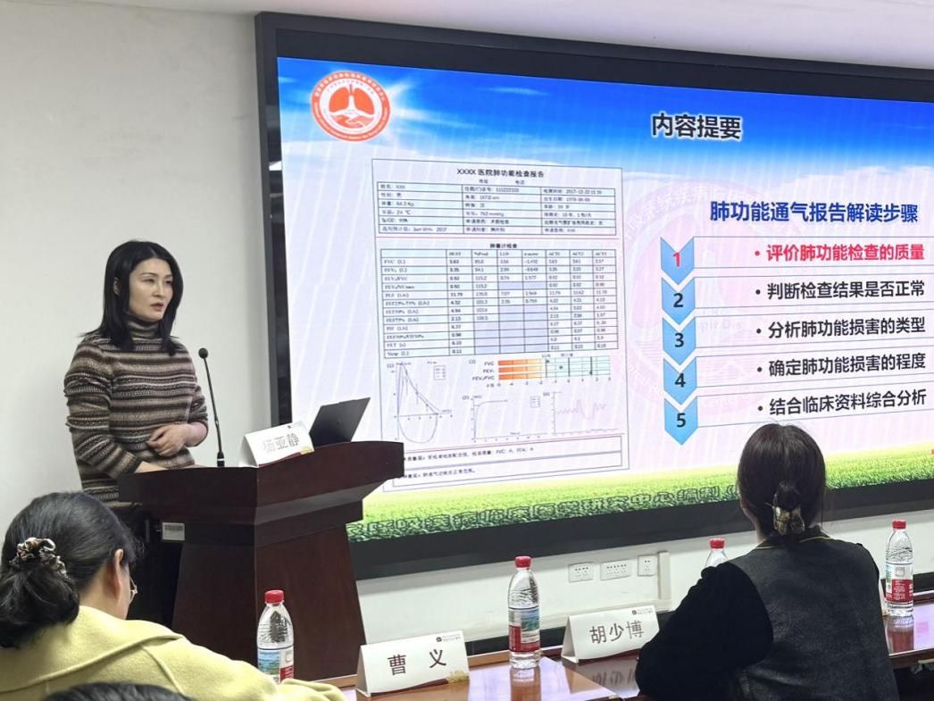 第四位授课教师是洛阳市中心医院呼吸与危重症医学科的张娜莉主任,她以《支气管舒张的方法及结果分析》为题,从检测方法、检测要求等方面切入,对于支气管舒张试验这一检查方法进行全面剖析,深化了学员对于支气管舒张试验在临床中应用的理解。