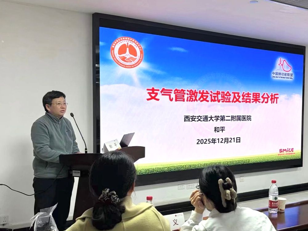 第五位授课教师为西交大二附院的和平老师,她以《支气管激发试验的方法及结果分析》为题展开授课,强调了激发试验的适应症及临床应用范围,讲解了激发试验的方法,指出支气管激发试验对哮喘诊断和鉴别诊断的重要意义。