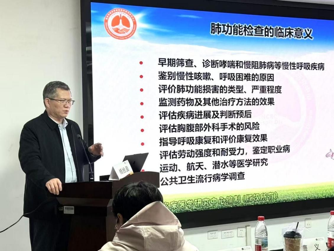 接下来的理论培训汇聚两地专家,内容兼具深度与实用性。首先由杨拴盈教授根据自己丰富的临床经验及国际国内最新研究进展讲述了《肺功能检查概述及规范化培训》。