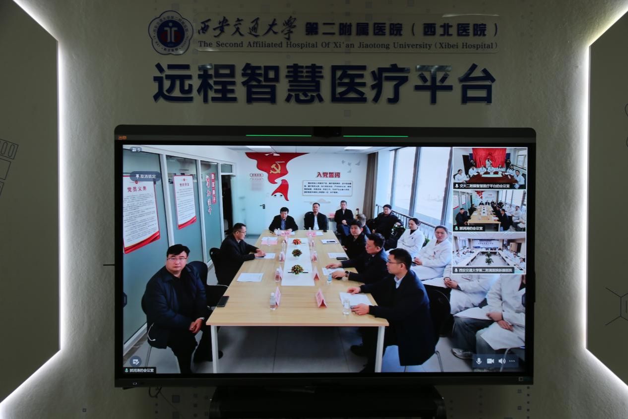 2025年12月25日上午,西安交通大学第二附属医院成功举办“远程智慧医疗平台揭幕仪式暨院区间协同实战演练”。仪式由医务部常务副主任王虎清主持,主院区、洛阳医院及新疆医院相关领导与同仁通过线上线下结合方式共同参与。