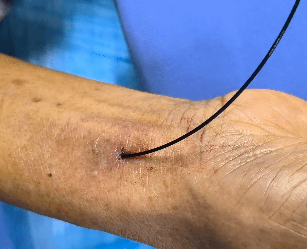 近日,医学影像科刘强教授团队与普通外科陆宏伟教授团队通力合作,成功为一名肝癌患者实施了“无鞘微导管技术”的介入治疗,完成了我院首例经桡无鞘微导管舒适HAIC(肝动脉化疗灌注术)。该技术为一名肝癌患者实现了真正意义上的超微创精准介入治疗,术中血管创口仅约0.8mm,患者术后即可步行返回病房,真正做到了创伤小、恢复快,显著提升了治疗的安全性与舒适度,获得了患者及家属的高度认可。