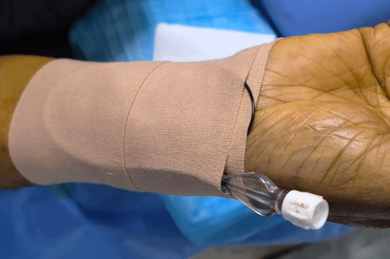 相比传统经股动脉路径HAIC,经桡无鞘微导管舒适HAIC具备三大优势:一是创伤更小——摒弃传统鞘管,血管创口仅为0.50-0.87mm,创口面积较传统方式减少80%以上;二是舒适度更高——患者术后即可下地活动,治疗期间无需长期卧床,生活自理能力得到保障;三是恢复更快——术后仅需压迫止血约2小时,相较于传统术后需卧床制动6-24小时,大大缩短了康复周期。这标志着HAIC治疗向更人性化、更微创的方向迈出关键一步。
