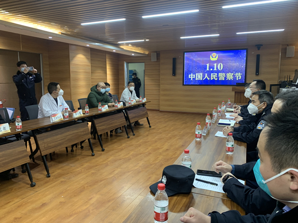 时值1.10警察节,李小鹏副院长代表医院全体教职工对来访公安干警表达了真切祝福,同时希望今后各级公安机关常来指导,多提宝贵意见,共同探索医警合作新模式,助力医院“平安医院”建设不断取得新成绩,共铸医院新时期高质量发展新局面。