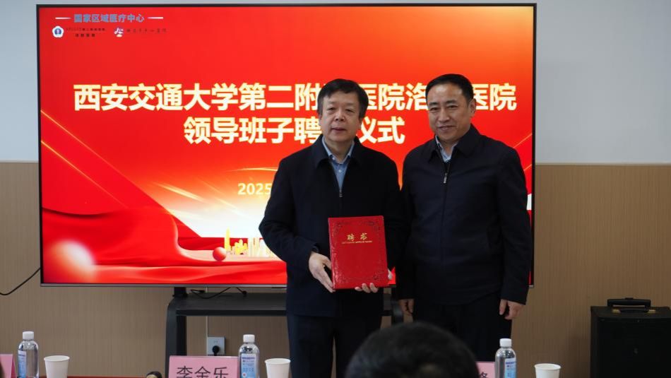 2025年12月25日上午,西安交通大学第二附属医院洛阳医院国家区域医疗中心学科建设与提升系列活动在伊滨院区隆重举行。洛阳市卫健委党组书记、主任李金乐,党组成员、副主任范高峰,西安交大二附院院长张蓬勃及洛阳市中心医院领导班子成员、两院学科带头人出席活动,本次活动涵盖聘任仪式、智慧医疗揭幕、学科交流、开放日启动等多个环节,标志着西交大二附院与洛阳市中心医院的合作迈入深度融合新阶段,为豫西地区医疗事业高质量发展注入强劲动力。
