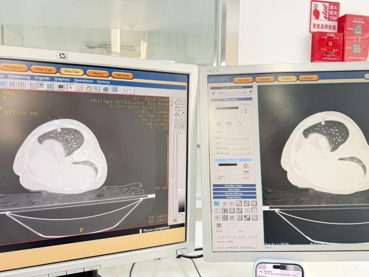 新疆医院成功开展首例大孔径CT引导下经皮肺穿刺活检术,以毫米级的精准,为2位肺部占位性病变患者揭开了疾病背后的“真容”。支撑这项技术的,是新疆医院新近引入的“硬核”伙伴——大孔径CT及外置定位激光系统。85厘米的超大孔径,可以满足穿刺定位的各种特殊体位需求,碳纤维无金属平板床面,既保证了扫描与穿刺体位的一致性,又避免了金属伪影的干扰,外置三维激光灯定位系统以及特有的定位软件,如同为穿刺装上了“导航”,直指靶心,提升了手术的安全性与成功率。此次手术的成功,不仅是一项新技术的落地,更是新疆医院多学科协作与精准医疗能力的生动展现。