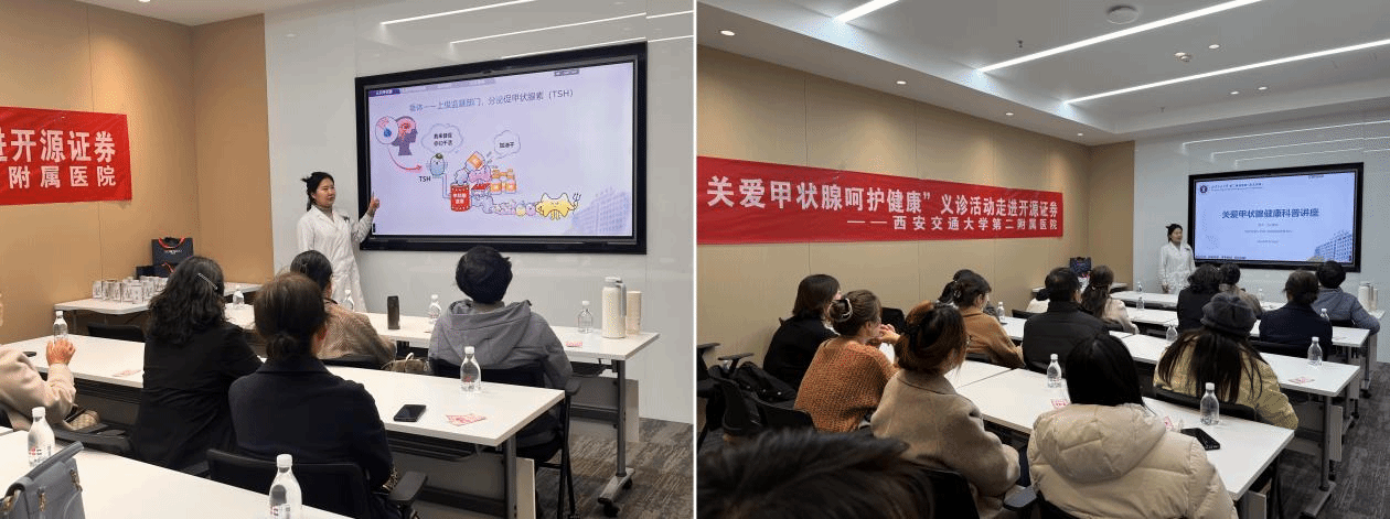近年来,甲状腺疾病在职场人群中发病率逐年攀升,为普及甲状腺健康知识,筑牢大众健康防线,近日,在医院统一组织下,核医学科党支部、团支部积极响应,联合我院超声医学科,走进开源证券开展“情暖芳华,举办“关爱甲状腺呵护健康”主题义诊活动。