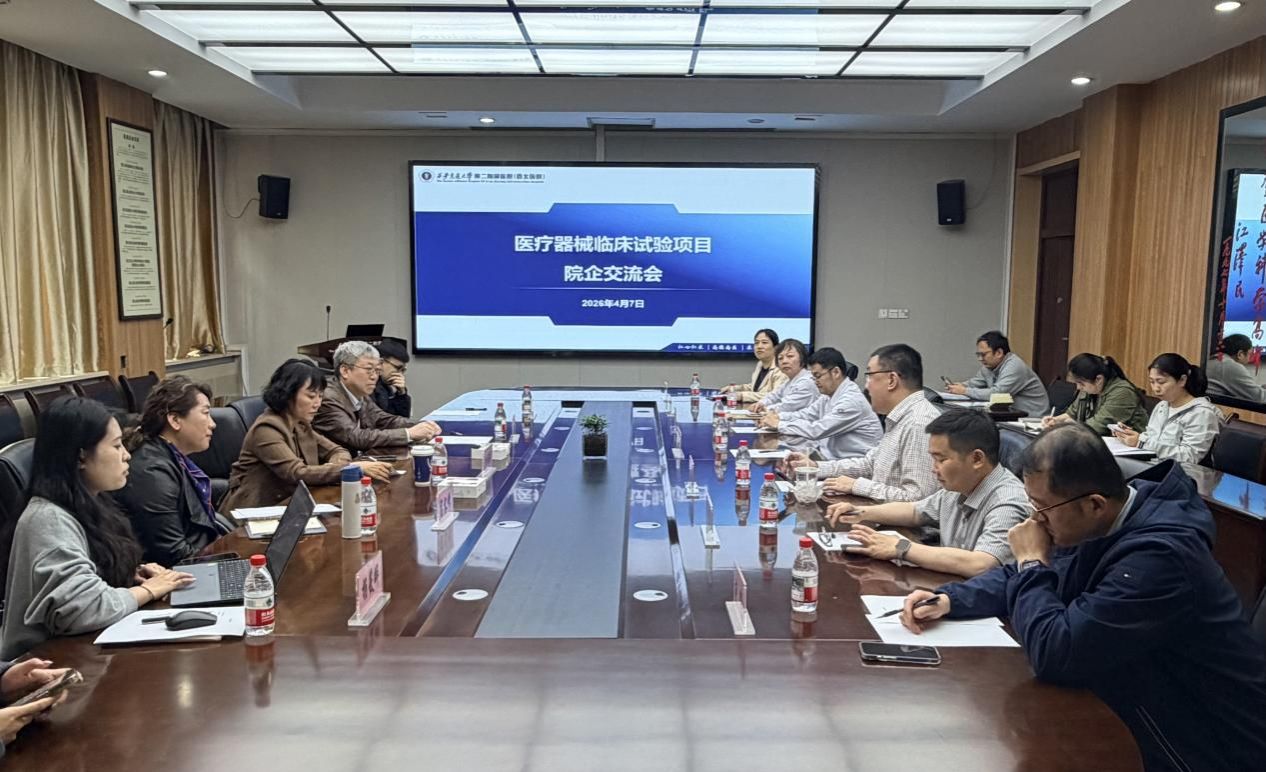 为进一步推动我院医疗器械临床试验工作,2026年4月7日下午,我院药物临床研究机构与陕西省艾柯塞斯科技有限公司高管及研发团队举行院企合作交流座谈会。会议确定由我院作为牵头单位,承接该公司即将开展的医疗器械临床试验项目。会议由药物临床研究机构办公室主任李静主持。