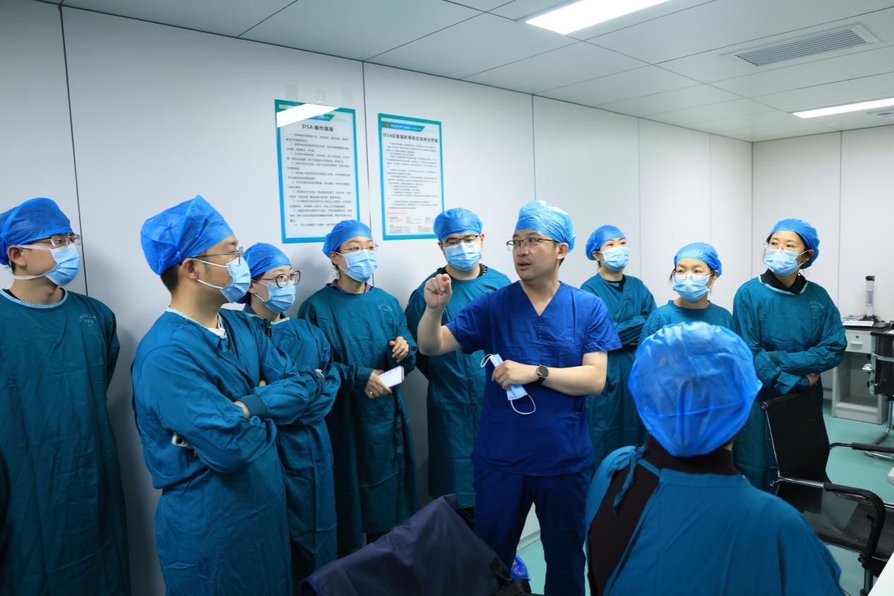 王洪涛副主任在导管室解答学员在参观手术演示时的提问