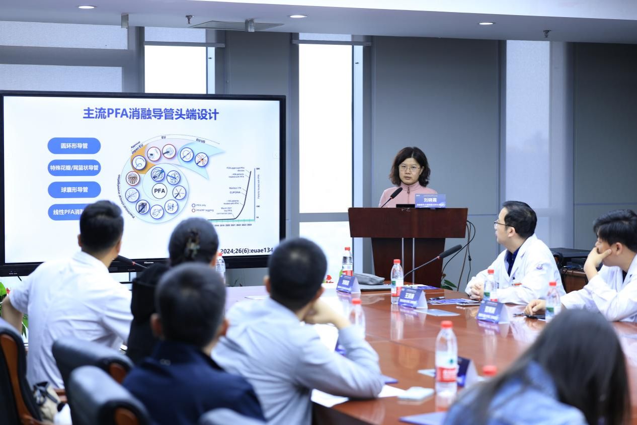 活动中,王洪涛副主任向刘晓霞教授汇报了我院单中心房颤脉冲电场消融(包括阵发性房颤与持续性房颤)的随访数据:自去年6月至今,我院脉冲消融手术总计完成301例,居西北地区首位,术后3个月成功率为88.11%,6个月成功率为86.85%,与传统射频消融成功率持平。刘晓霞教授对我院取得的成绩表示祝贺,并提出了持续引领区域技术发展、进一步提升临床获益的希望。