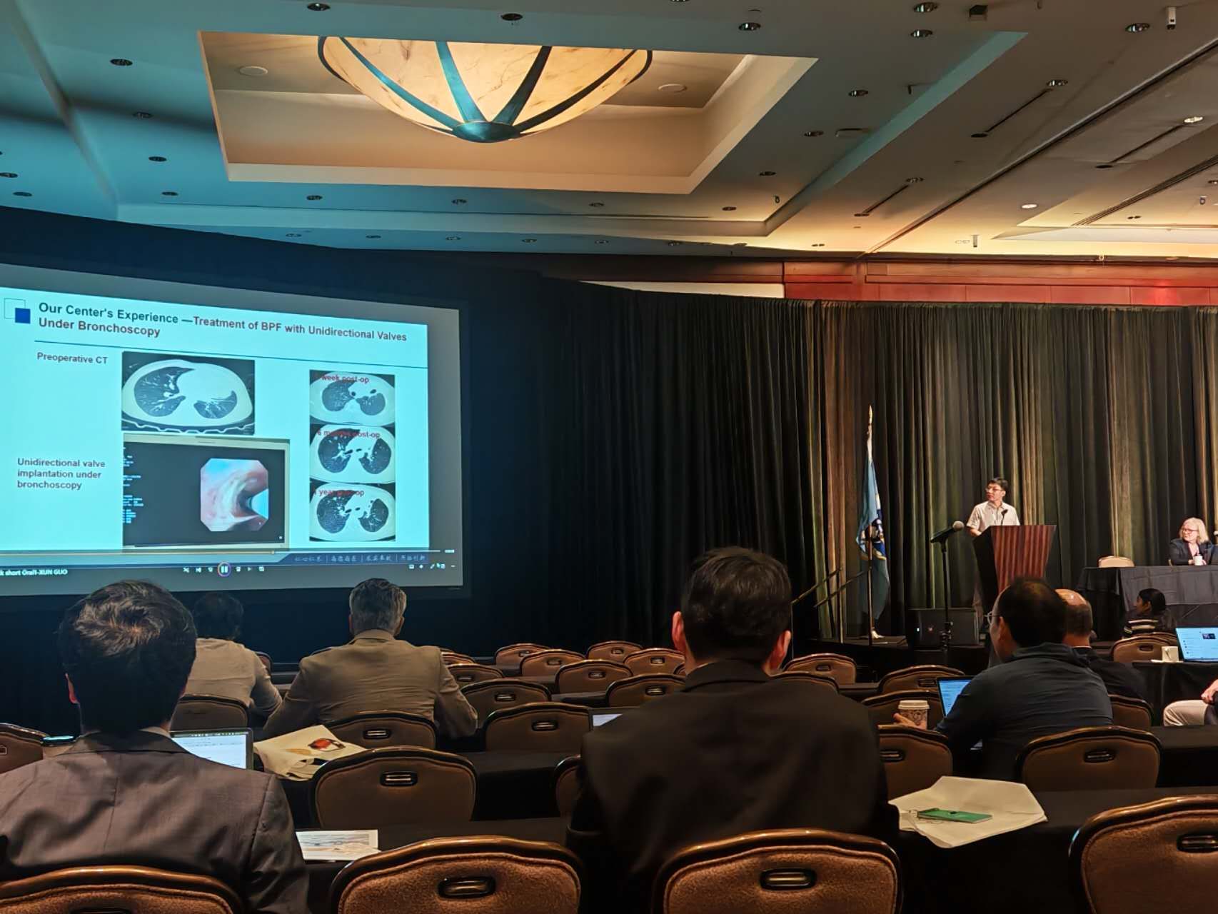 在如此高规格的国际盛会上,西安交大二附院小儿外科团队首日便迎来了“高光时刻”。由李鹏主任领衔,程继文(Successful Treatment of Traumatic Complex Esophageal Atresia in Children Using Dual Endoscopy Combined withMagnetic Compression Technique)、刘瑶(Mid-Term Pulmonary Function after ThoracoscopicSurgery for Congenital Lung Diseases in Children)、郭询(胸外科,Clinical Characteristics and Individualized Management of Bronchopleural Fistula in Children)等4位团队成员悉数登场,围绕小儿外科领域的前沿课题,先后进行了5项高水平的学术发言。其中,李鹏主任个人共完成两项精彩报告,充分展现了团队带头人的深厚学术造诣。