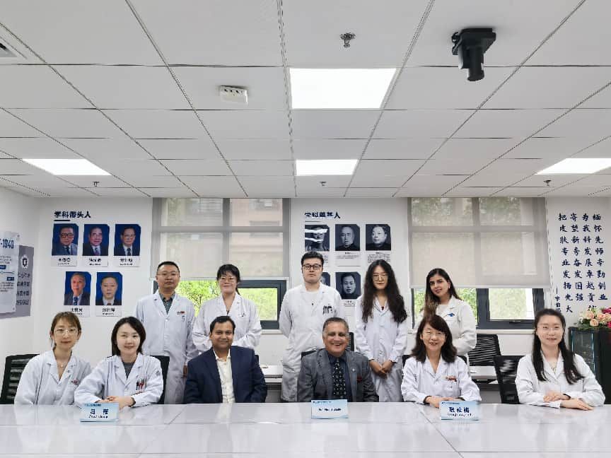 分享结束后,与会人员与Bhatia Neal教授以及Asif Shaikh博士围绕银屑病的治疗策略选择、最新临床研究数据等议题展开了深入探讨。Asif Shaikh博士充分肯定了我科在临床试验研究方面取得的成果,并表示期待与我科建立长期合作关系,将我科列为中国区战略合作伙伴,携手推进相关领域的临床研究。本次活动进一步增进了我院与国际知名皮肤病学机构的学术交流,为今后双方在科研合作、临床试验等方面的深度合作奠定了良好基础。