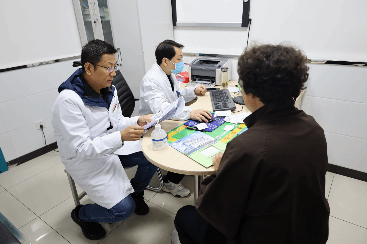 座谈交流结束后,由老年普通外科、皮肤科、泌尿外科、神经外科、骨科中心骨病与创伤科、消化内科、心血管内科、耳鼻咽喉头颈外科、超声科、妇产科10位专家组成的医疗团队,迅速投入到义诊服务中。