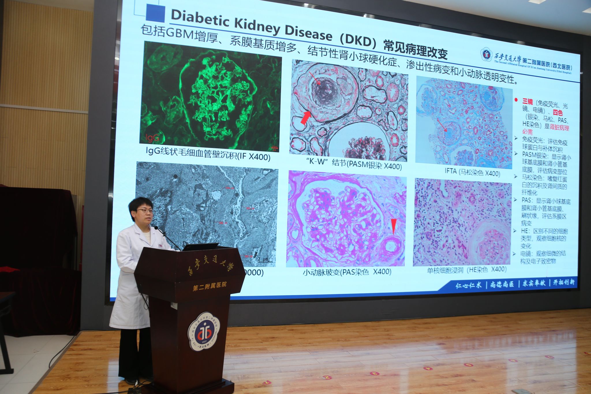 在王莉教授的主持下,会议进入核心的“点评研讨”环节。不同于传统病例讨论的单向汇报,本次“精研”强调互动与研讨。参会学员根据汇报病例提出2个相关问题:糖尿病肾病的肾活检穿刺病理结果如何判断?本患者在选择替代治疗时为什么优选腹腔透析,在腹腔透析时有什么注意事项?与会的肾病科马晓桃老师和陈钊副主任根据问题一一进行回答,并给大家做了基础知识讲解。