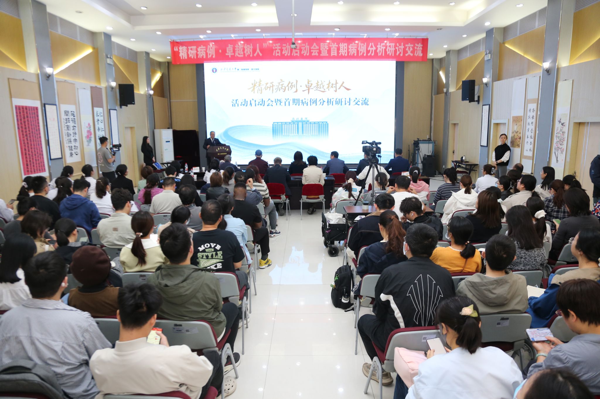 为深入推进医院卓越战略落地实施,强化临床人才培养,提升各类学生学员临床思维、规范诊疗,促进多学科协作融合,营造全院“卓越求精”教学氛围,由我院教务部主办、“两办”推动、多部门联合协作的“精研病例・卓越树人”活动启动会暨首期病例分析研讨交流会,于2026年4月24日上午10点30分在南院多功能厅成功举行。会议邀请到资深专家:校级教学督导纪宗正教授、消化内科龚均教授;党委书记刘昌教授;副院长种铁教授;普通外科主任杨文彬教授;泌尿外科主任薛力教授;教务部副主任周戬平教授。还邀请了研讨专家团队:眼科冯朝晖教授;消化内科主任李路教授;肾病科副主任王莉教授;内科学系副主任焦杨副教授;耳鼻咽喉头颈外科侯瑾副教授;肾病科韩锦副教授。本次会议吸引了来自全院各临床科室的中青年骨干医师、本科生、研究生、住专培医师、进修医师约150人参加,现场学术气氛浓厚,互动热烈。